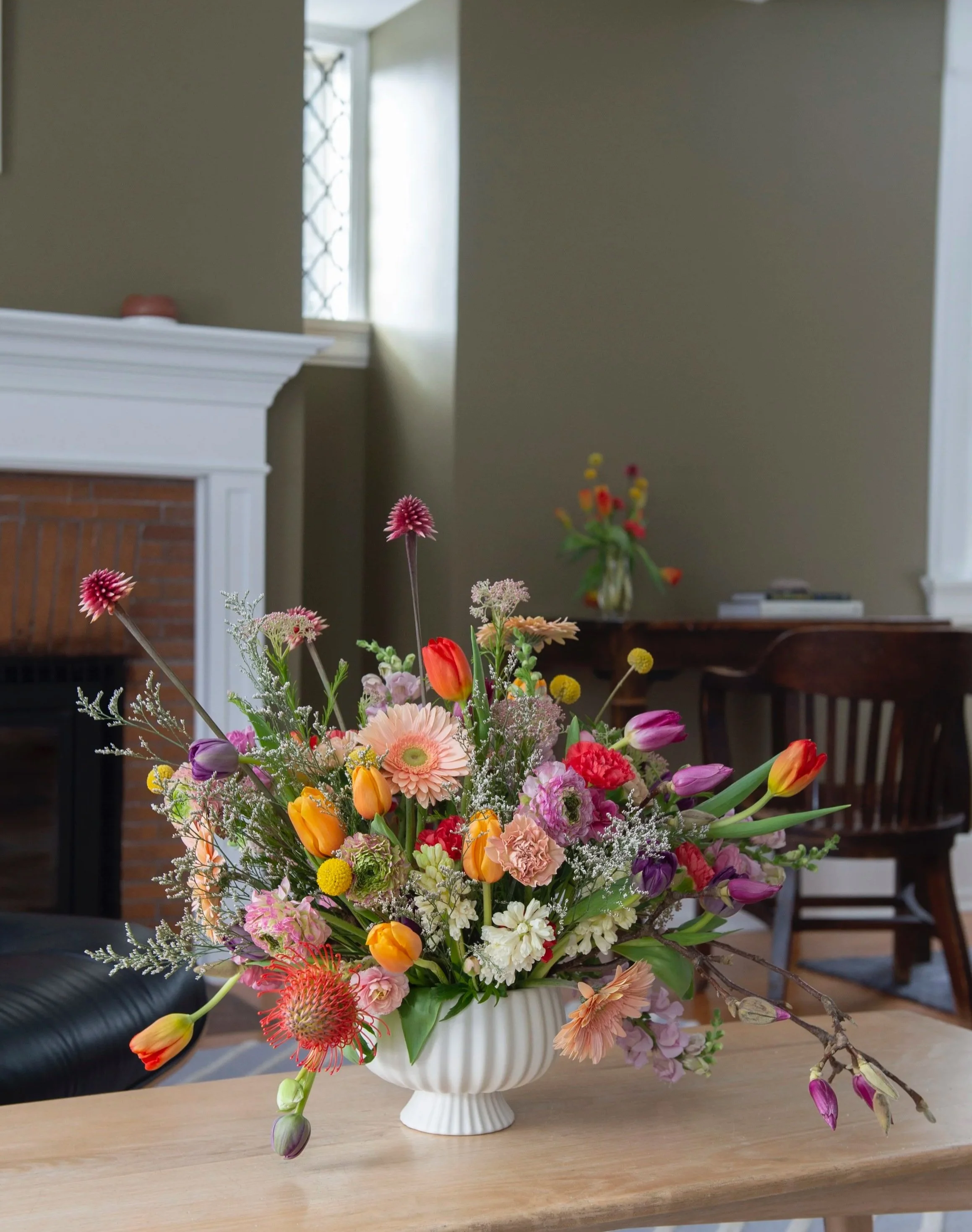 2 arrangements - Thoughtful florals for an island kitchen and secondary rooms.