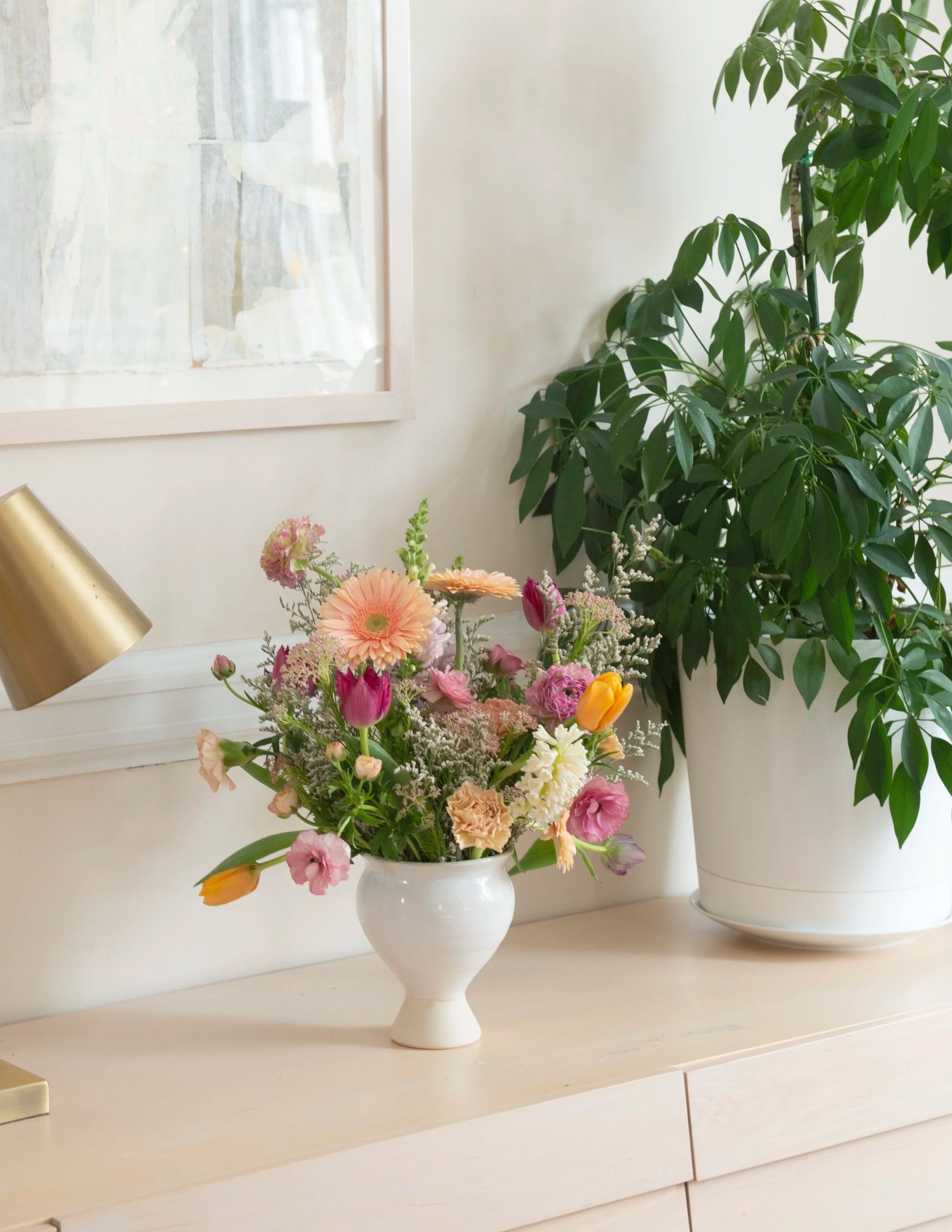 For when you want to make the day special without going all-out: a few key spots in her home quietly glowing with flowers.
